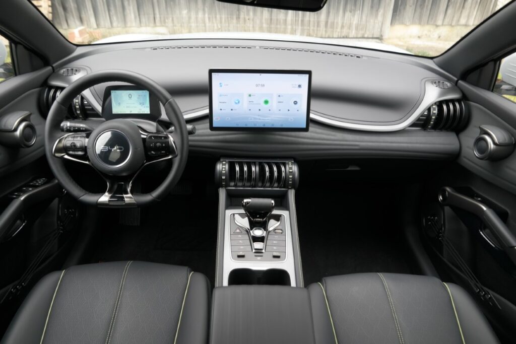 Damit erweist sich der überraschend geräumige Chinese als optisch stimmiger Stromer für Jedermann mit Premiumanspruch, was sich bei Verarbeitung, Materialmix und Ausstattung zeigt. Das gefällige Äußere weist alle modischen „Must-Haves“ auf, die da wären Sicken, Ecken und Kanten, schmale Scheinwerfer, kurze Überhänge sowie ein LED-Leuchtenband am Heck. Innen gibt sich der Atto 3 positiv verspielt, wobei vor allem die Lüftungsdüsen und die gewöhnungsbedürftigen Türgriffe optisch hervorstechen. Die Bedienbarkeit des Multimediasystems hat man nach kurzer Einarbeitung intus, dass es für wichtige Funktionen nach wie vor Knöpfe – unter anderem auf dem Lederlenkrad – gibt, ist toll. Die Sprachsteuerung funktioniert hingegen weniger toll.