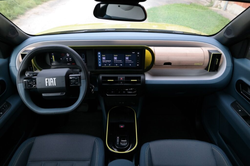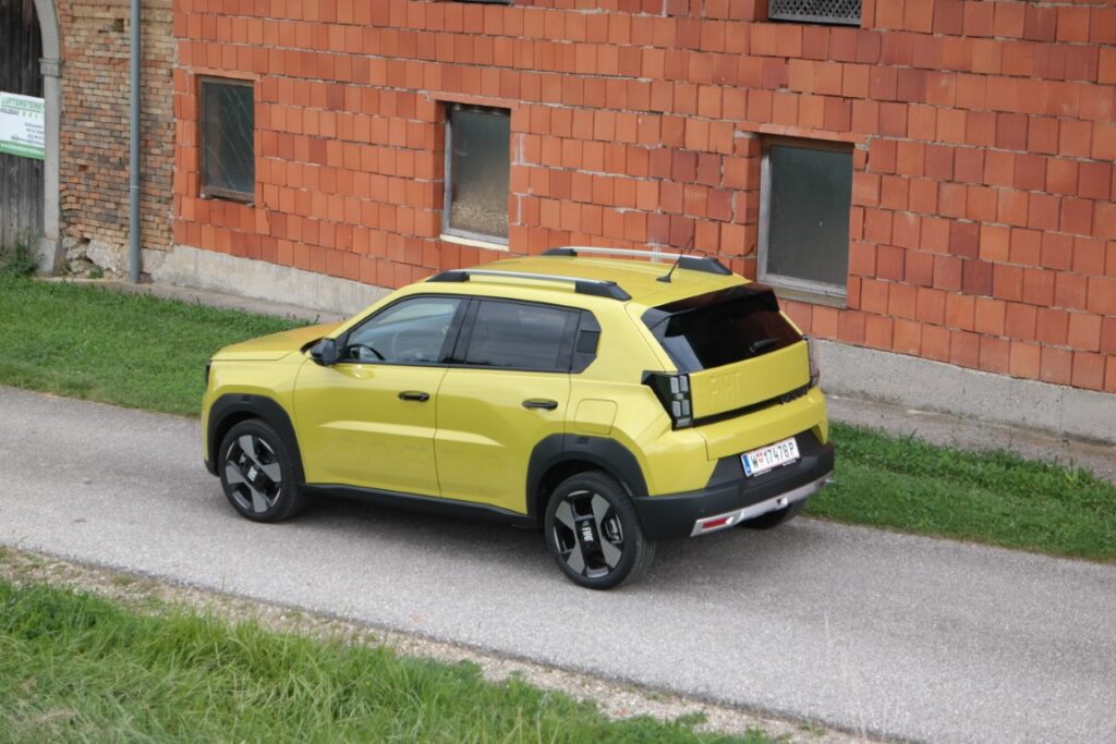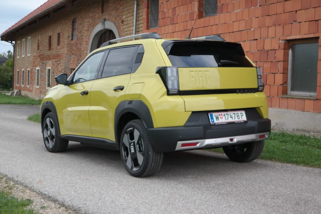 Der Grande Panda orientiert sich optisch stark am Ur-Panda von 1980. Klare Linien, kurze Überhänge, kantige Scheinwerfer. Die Karosserie misst 3,99 Meter in der Länge – das ist deutlich mehr als beim Vorgänger. Trotzdem bleibt der Panda kompakt genug für die Stadt. Die Bodenfreiheit ist erhöht, was ihm einen SUV-ähnlichen Look verleiht.