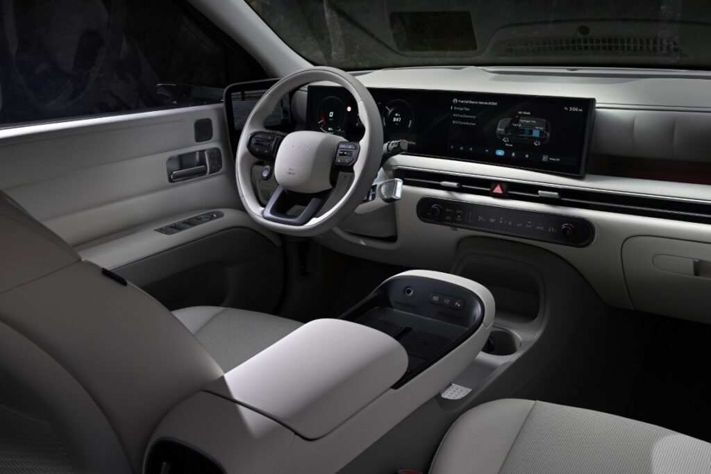 Im Inneren präsentiert sich der Nexo als Premiummodell mit hochwertiger Verarbeitung, großzügigem Raumgefühl und zahlreichen Komfortfeatures. Neben einer 12,3-Zoll-Doppeldisplay-Anordnung finden sich ein Panorama-Vision-Roof, ein 14‑Lautsprecher Bang-&-Olufsen-Soundsystem, duale induktive Ladeflächen sowie erstmals eine Vehicle-to-Load-Funktion (V2L) sowohl innen als auch im Außenbereich. Das Kofferraumvolumen wuchs im Vergleich zum Vorgänger spürbar: auf 510 Liter, bei umgeklappten Sitzen bis zu 1.630 Liter.
