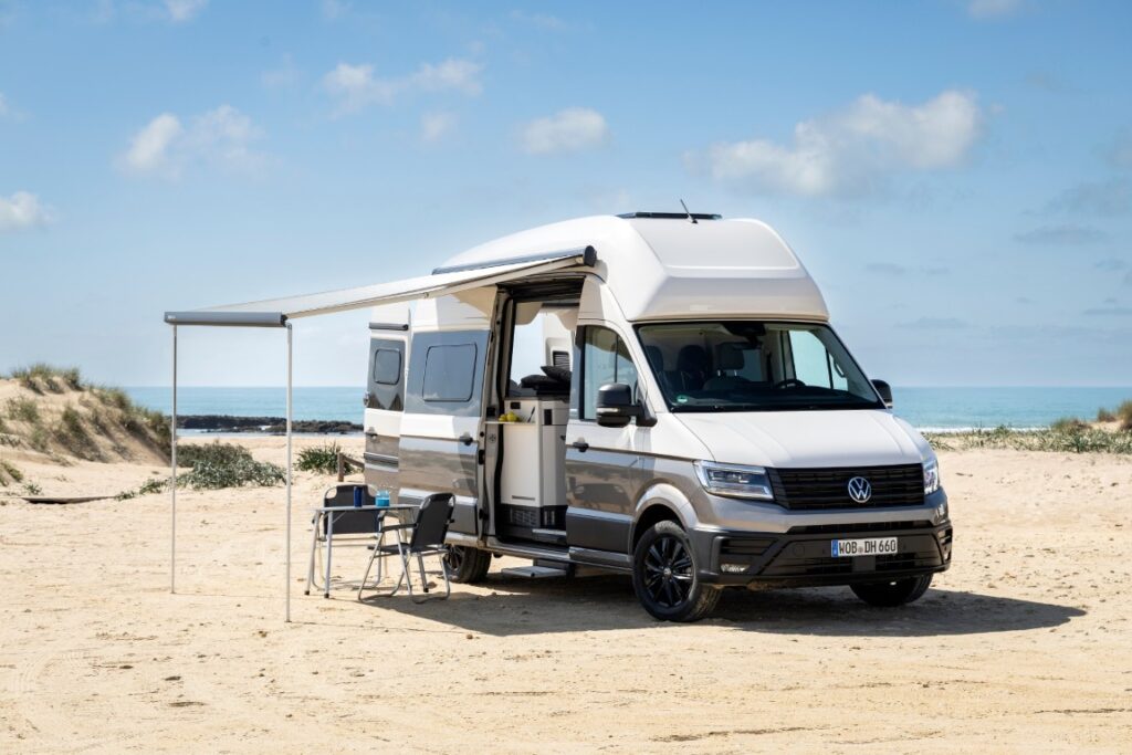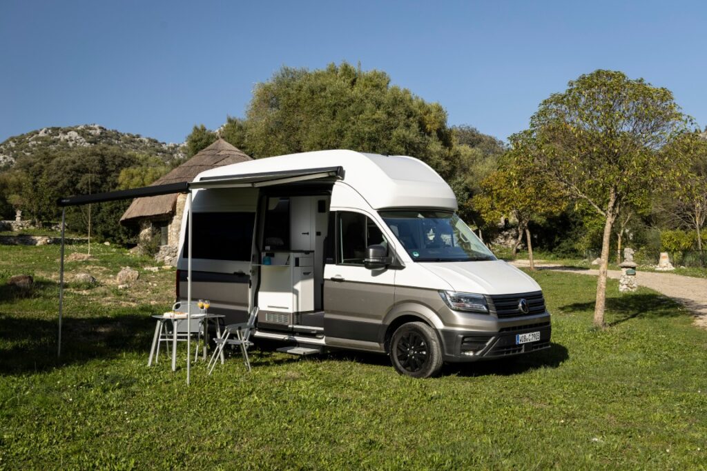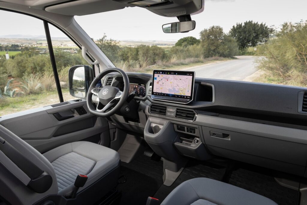 Auch die Fahrzeugtechnik wurde an den aktuellen Stand des Crafter angepasst. Serienmäßig verfügen alle Modelle nun über das Digital Cockpit Pro, ein neues Infotainmentsystem mit großem Touchscreen sowie Assistenzsysteme wie Front Assist, Lane Assist, Parkhilfen und Verkehrszeichenerkennung. Auf Wunsch ist Travel Assist verfügbar, der eine assistierte Längs- und Querführung ermöglicht. Eine neue elektronische Parkbremse schafft zusätzliche Bewegungsfreiheit im Cockpit, was insbesondere beim Drehen des Fahrersitzes in den Wohnraum Vorteile bringt.