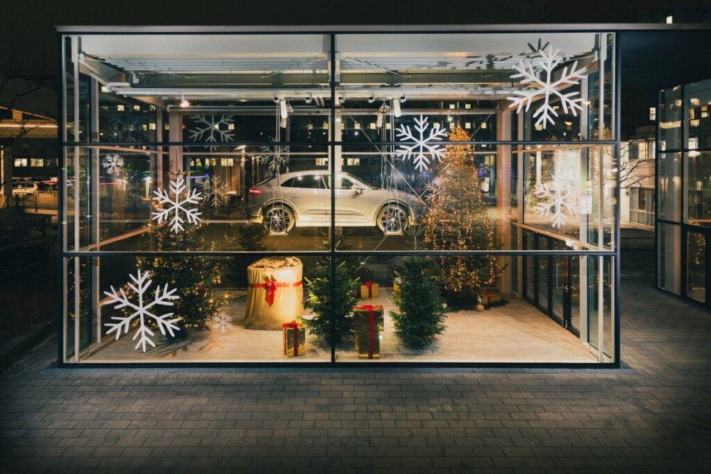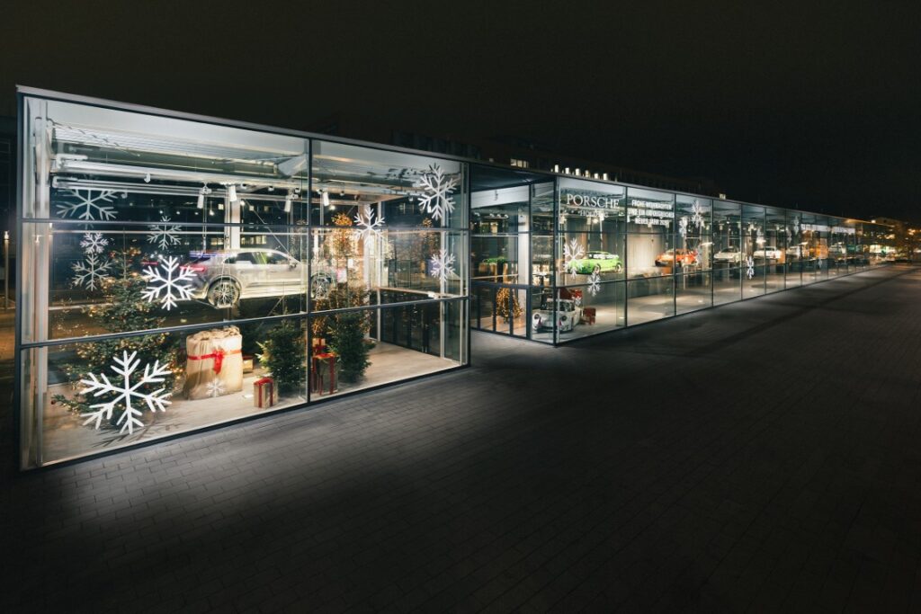 Neun einzigartige und besonders sportliche automobile Porsche Sammlerstücke aus dem Porsche Automuseum Gmünd zieren ab sofort das große Weihnachts-Konzernschaufenster der Porsche Holding Salzburg in der Vogelweiderstraße 75.