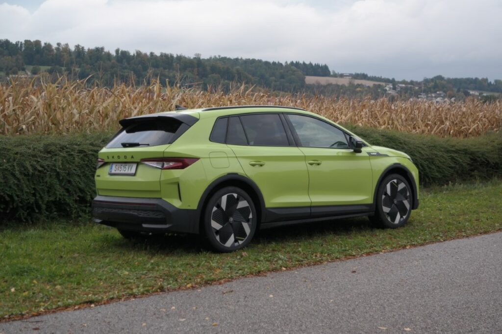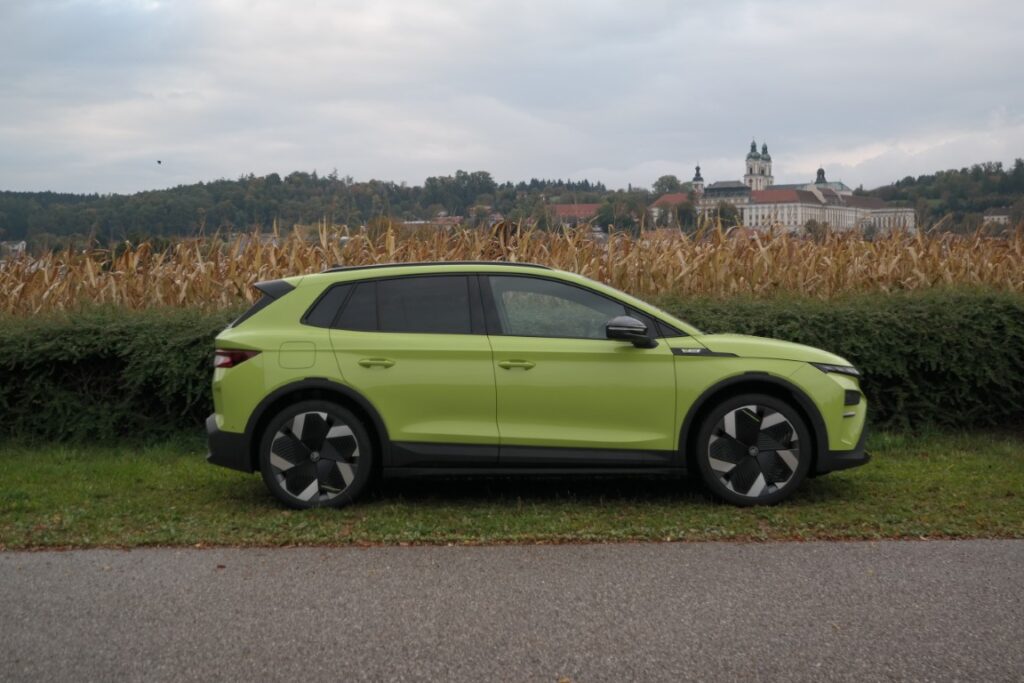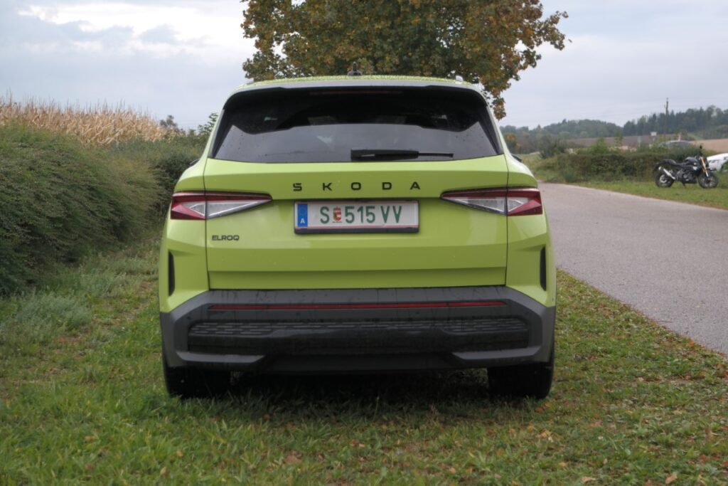 Positiv fällt zudem das adaptive Fahrwerk auf: Unebenheiten im Stadtverkehr werden souverän geschluckt, Kopfsteinpflaster nahezu geglättet. Auch auf der Autobahn zeigt sich der Elroq langstreckentauglich. Die Lenkung ist leichtgängig, bietet aber dennoch gute Rückmeldung. Der Wendekreis von nur 10,2 Metern erleichtert das Rangieren im Alltag. Kritik gibt es bei der Bremsdosierung, die zunächst gewöhnungsbedürftig ist. Im Ernstfall überzeugt der Elroq jedoch mit einem guten Bremsweg von 34,3 Metern aus 100 km/h.
