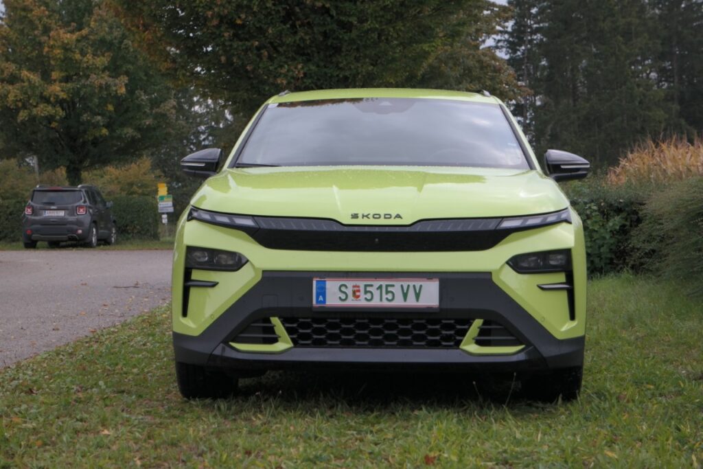 Skoda setzte bei der Silhouette des kompakten Stromers, der ebenso auf der MEB-Plattform steht, auf klare Linien und eine eher zerklüftete Front ohne klassischen Kühlergrill. Hinter der geschlossenen Fläche verbergen sich Sensoren für Assistenzsysteme – funktional, aber nicht unbedingt elegant.