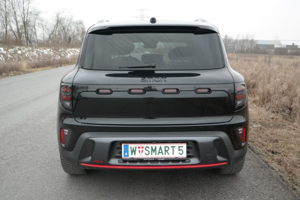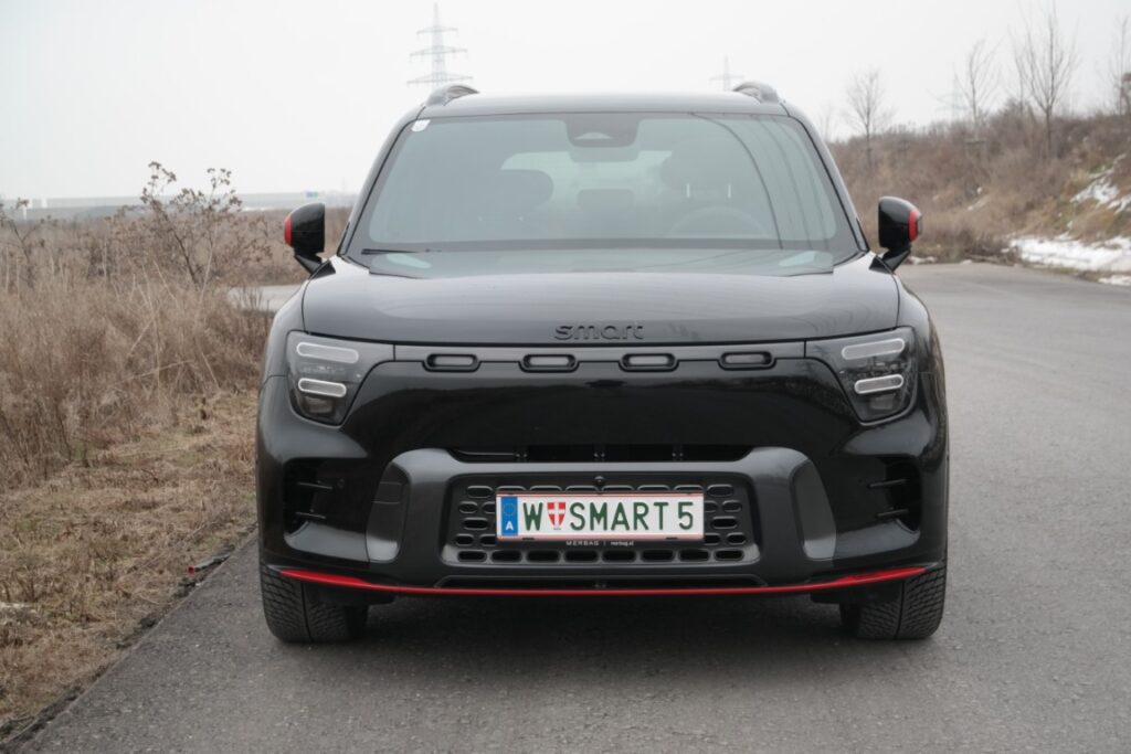 Äußerlich gibt sich der Smart #5 Brabus robust, fast bullig. Die kantige Silhouette, kurze Überhänge und der lange Radstand erzeugen einen selbstbewussten Offroad‑Look, der sich klar vom kleineren Smart #1 absetzt. Mit seiner eigenständigen Formensprache und markanten Proportionen wirkt der #5 Brabus daher eher wie ein Vertreter der etablierten Performance‑SUV‑Liga als wie ein Ableger der Smart‑Familie.
