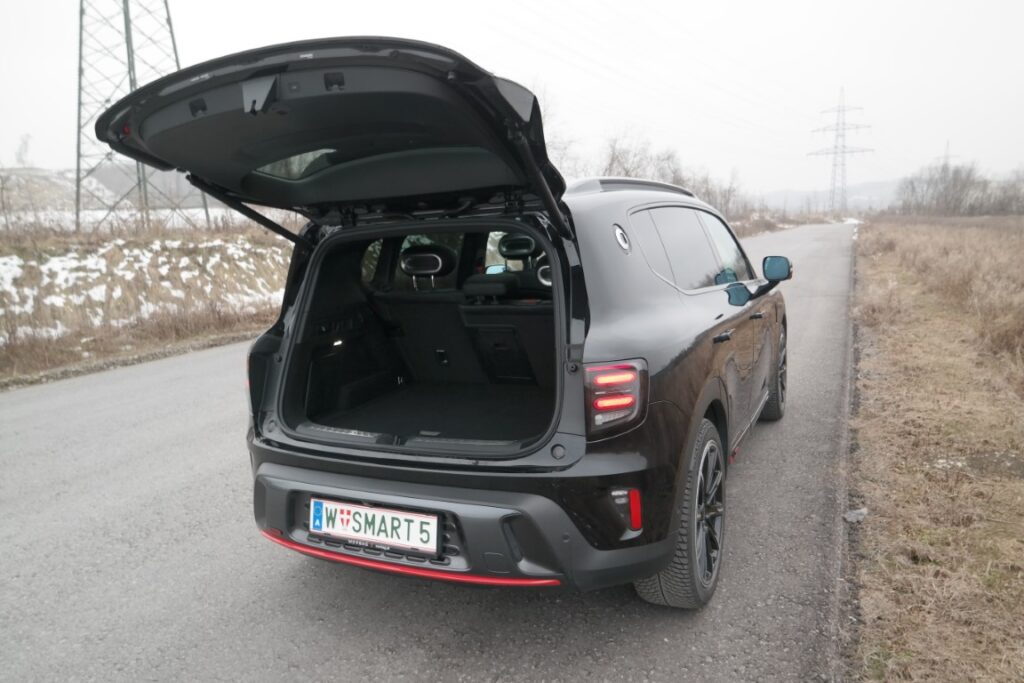 Sitze und Materialien sind hochwertig verarbeitet, der Innenraum folgt einer klaren Designlinie aus moderner Funktionalität und sportlicher Brabus‑Note. Besonders gelungen ist die Integration von Panorama‑Glasdach und variablen Sitzkonzepten: Der Kofferraum fasst 630 Liter, bei umgeklappter Rückbank stehen bis zu 1530 Liter zur Verfügung – ergänzt durch einen 47‑Liter‑Frunk. Damit zeigt der Smart #5 Brabus – ausgestattet mit fünf NCAP-Sternen – eine neue Dimension der Marke: Aus dem einstigen City‑Spezialisten wird ein vollwertiges Familien‑ und Reiseauto.